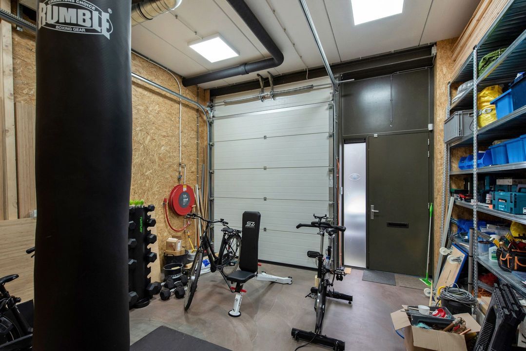 Het object heeft een dubbele entree waarvan één aan de kopse kant. Aan de voorzijde beschikt deze ook over een overhead-deur. Er zijn in totaal 4 parkeerplaatsen aanwezig waarvan één beschikt over een elektronische parkeerbeugel en één over een laadpunt voor een elektrische auto. Naast het laadpunt is het object ook voorzien van een intercom, alarm en camerasysteem.