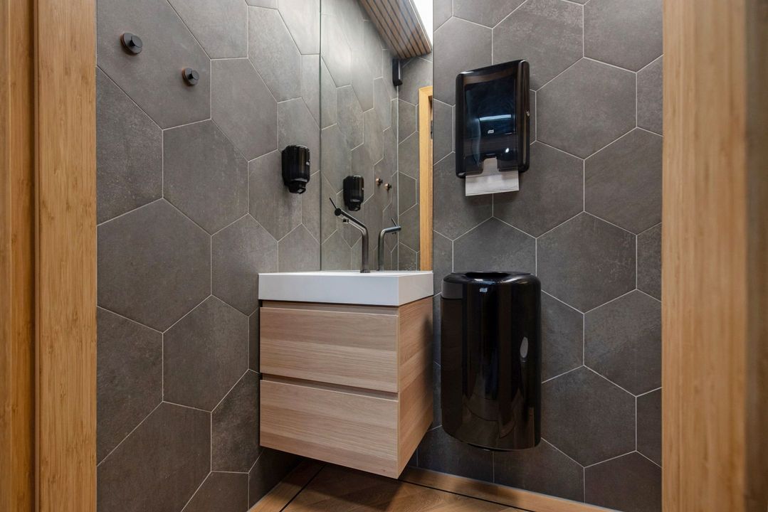 Zowel de begane grond als de verdieping beschikken over verwarming middels vloerverwarming alsmede via de decentrale warmteterugwinning in het plafond van Daikin, mechanisch ventilatiesysteem en volledig airconditioningsysteem van Daikin. Daarnaast over ruime toiletvoorziening en keuken met voorzieningen zoals een vaatwasser, combi-magnetron, koffieapparaat, boiler en koelkast met vriezer. Het hele kantoor is voorzien van duurzame Ledverlichting en een verlaagd plafond (smal profiel en doorzaktegel 60 x 60 cm). De bedrijfsruimte is separaat ook voorzien van een pantry met eigen boiler. Door deze faciliteiten zijn zowel de bedrijfsruimte als kantoorruimte dus beide afzonderlijk van elkaar te gebruiken.