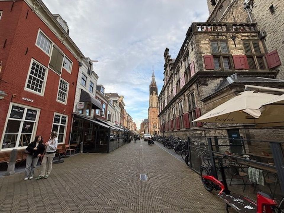 Het adres bevindt zich in het kerngebied van Delft, wat betekent dat het deel uitmaakt van een druk bezocht historisch stadsplein.