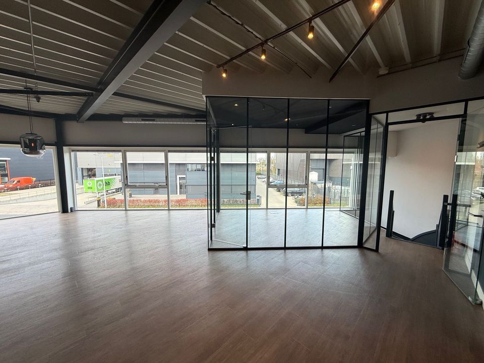Deze moderne en representatieve bedrijfsruimte met kantoor, gelegen aan de Reflectiestraat 61 te Nootdorp, biedt een uitstekende combinatie van functionaliteit en uitstraling. Dankzij de grote raampartijen beschikt het object over veel daglicht, wat zorgt voor een aangename en productieve werkomgeving. De bedrijfsruimte is praktisch ingedeeld en voorzien van een overheaddeur, ideaal voor logistieke werkzaamheden. De kantoorruimte, op de eerste verdieping, is modern en licht opgezet en leent zich uitstekend voor diverse bedrijfsactiviteiten.