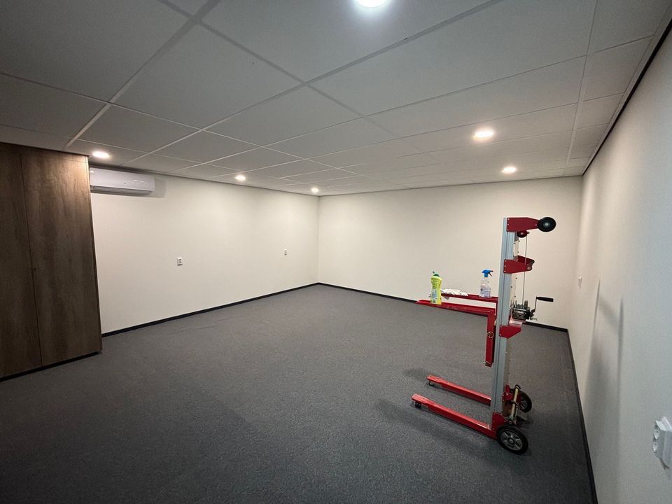 De kantoorruimte beschikt over één parkeerplaats voor de loopdeur. De parkeerplaats voor de overhead-deur kan gebruikt worden in overleg met de gebruiker van de begane grond.