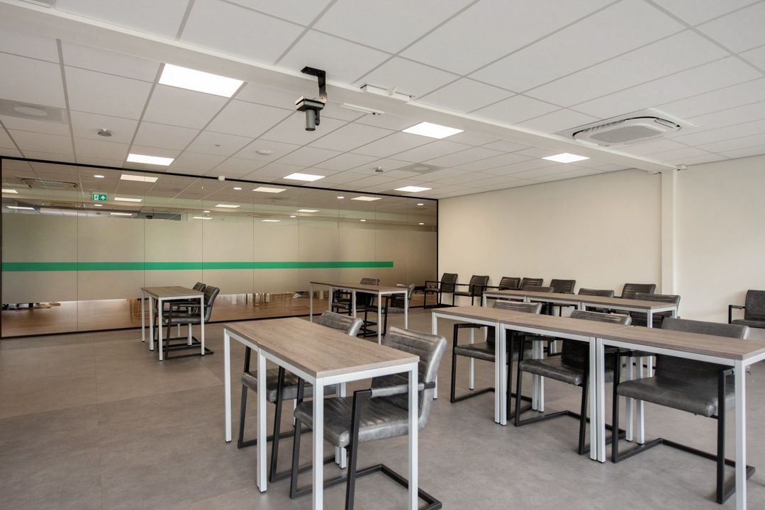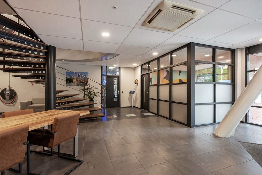 Het betreft hier een kleinschalig verzamelgebouw van hoge kwaliteit afwerking, welke over diverse gezamenlijke voorzieningen beschikt. De centrale entree en trappenhuis is rondom voorzien van diverse toiletgroepen, een vergaderruimte en ontvangstruimte. Voor de deur zijn parkeerplaatsen voor bezoekers. Op dit moment is een deel van de eerste verdieping beschikbaar voor verhuur. Het gehuurde is voorzien van eigen toiletgroepen, keuken/pantry, vergaderruimtes, kantoortuinen, belruimtes en leslokaal.