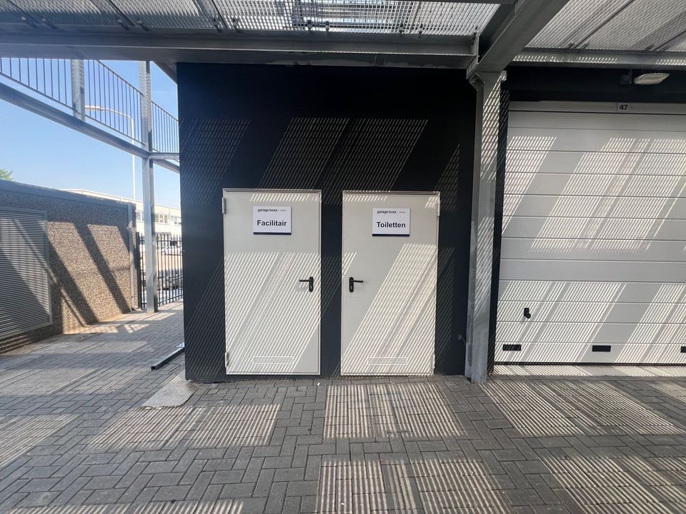 De garagebox is voorzien van o.a. betonnen vloer en wanden, een elektrische overheaddeur, verlichting en enkele elektra aansluitingen. Er zijn tevens gemeenschappelijke sanitaire voorzieningen aanwezig.